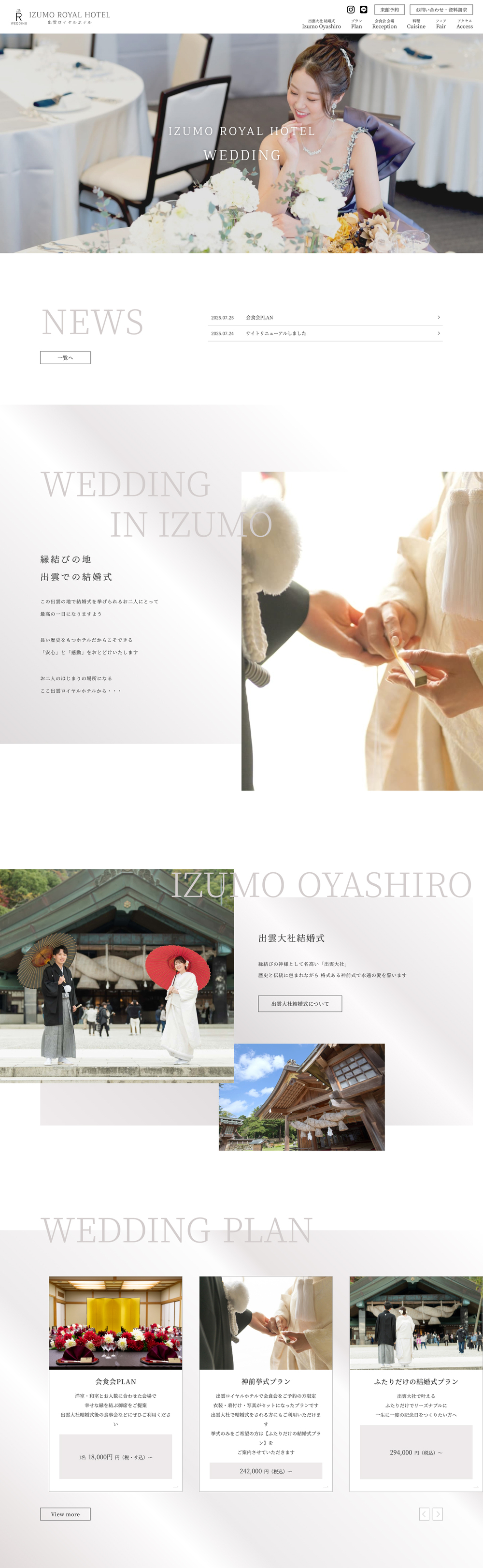 現在の位置:トップ / ホームページ制作実績 / 商業・通販・卸売・IT / 出雲ロイヤルホテルウエディング