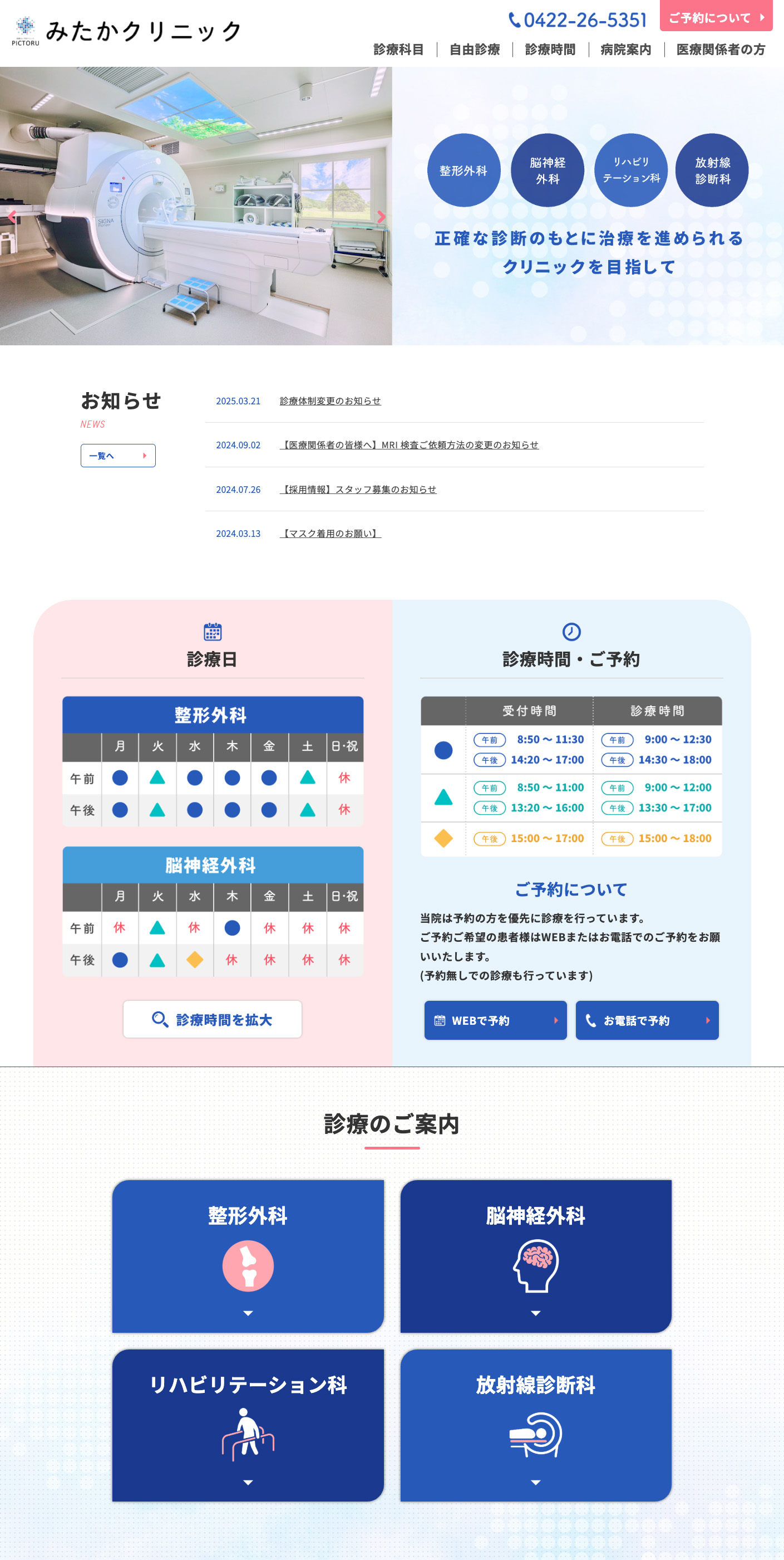 現在の位置:トップ / ホームページ制作実績 / 病院・医療 / みたかクリニック